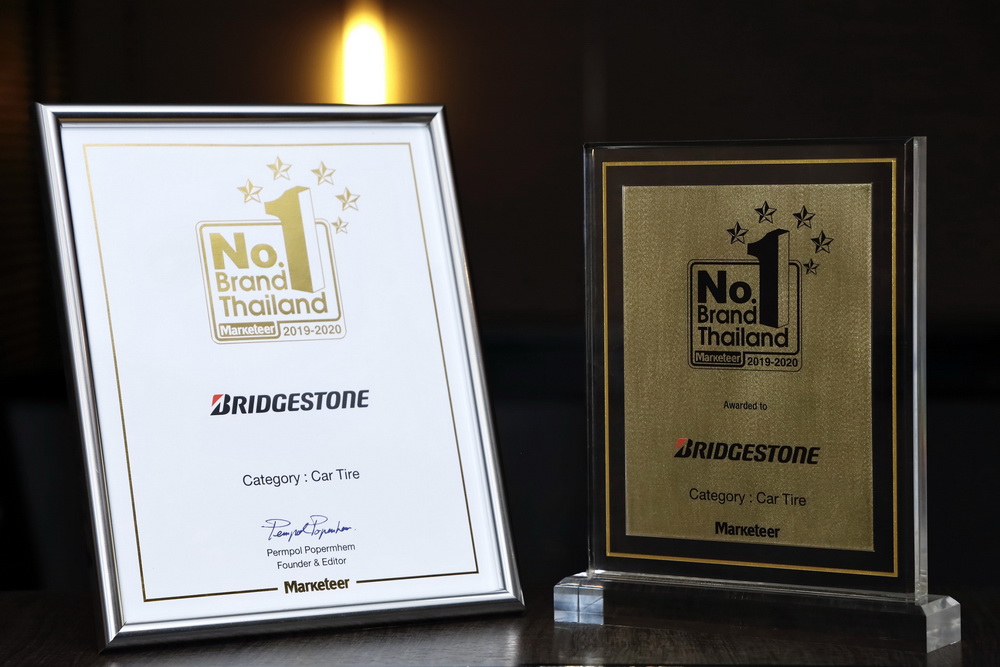 บริษัท บริดจสโตนเซลส์ (ประเทศไทย) จำกัด ตอกย้ำความเป็นผู้นำครองแบรนด์อันดับหนึ่งในตลาดยางรถยนต์ เข้ารับรางวัลอันทรงเกียรติ “แบรนด์ยอดนิยมอันดับหนึ่งของประเทศไทย” ประเภทยางรถยนต์ หรือ “No.1 Brand Thailand 2019-2020” ต่อเนื่องเข้าสู่ปีที่ 9 โดย คุณสมิทธ์ แสงไฟ ผู้จัดการส่วนงานการตลาดและกลยุทธ์ เป็นตัวแทนบริษัทฯ รับรางวัลจากนายเพิ่มพล โพธิ์เพิ่มเหม บรรณาธิการและผู้ก่อตั้งนิตยสาร Marketeer ณ โรงแรมดิโอกุระ เพรสทีจ กรุงเทพฯ ซึ่งเป็นรางวัลที่ได้รับการคัดเลือกกว่า 1,000 แบรนด์ จากผลสำรวจความนิยมของประชาชนทั่วประเทศ สะท้อนภาพลักษณ์ความแข็งแกร่งของแบรนด์ บริดจสโตนที่ครองใจผู้บริโภคมาอย่างยาวนาน จากความมุ่งมั่น สร้างสรรค์เทคโนโลยีและพัฒนานวัตกรรมในทุกกระบวนการผลิต เพื่อส่งมอบผลิตภัณฑ์และการบริการที่ดีที่สุดบนพื้นฐานของความปลอดภัยสูงสุดตลอดทุกการเดินทางแก่ผู้บริโภค