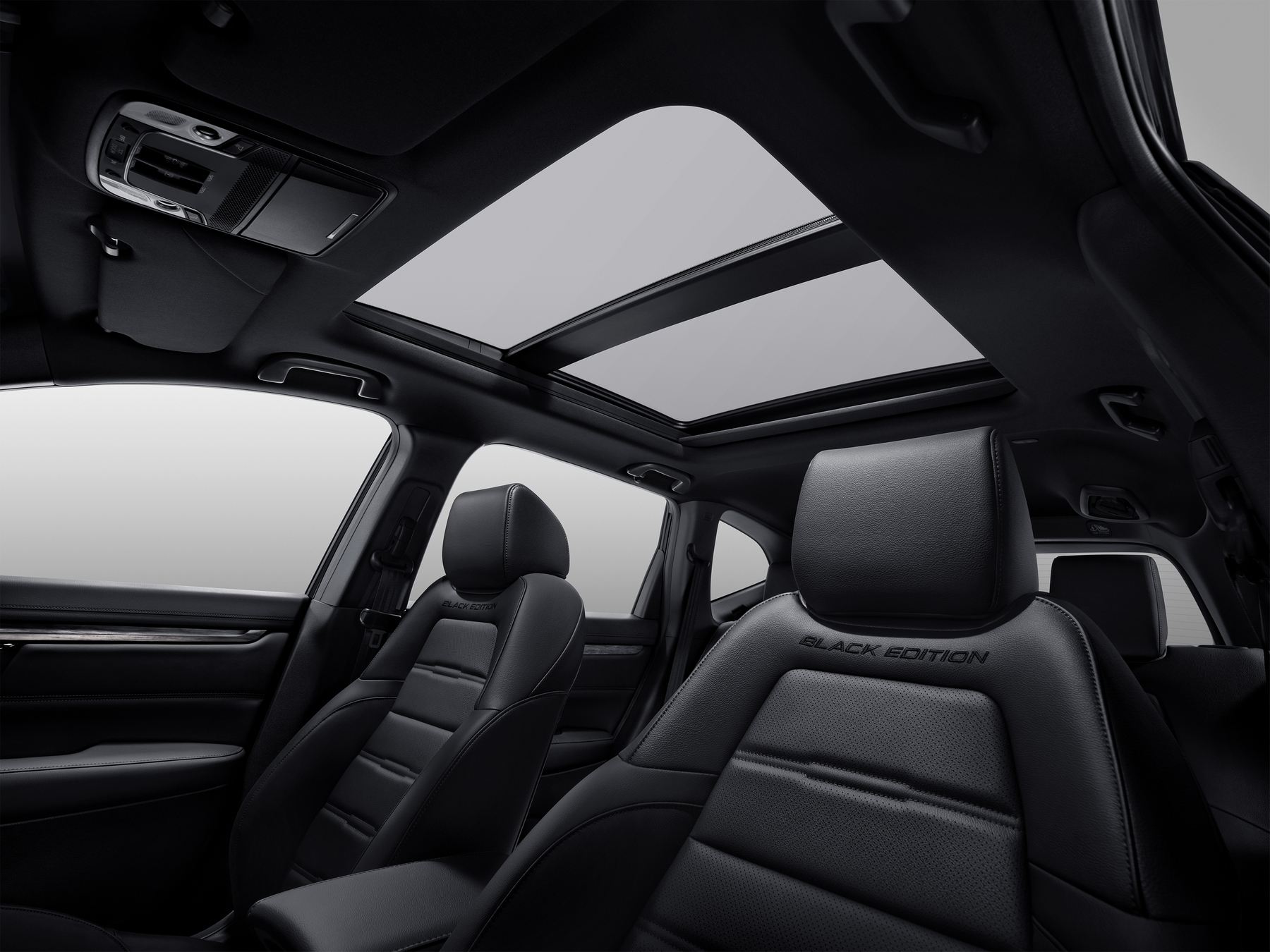 บริษัท ฮอนด้า ออโตโมบิล (ประเทศไทย) จำกัด ตอกย้ำกระแสความนิยมและตำแหน่งผู้นำในกลุ่มรถสปอร์ตอเนกประสงค์ขนาดใหญ่ (L-SUV) ของ ฮอนด้า ซีอาร์-วี ที่ครองส่วนแบ่งการตลาดในเซกเมนต์ช่วงครึ่งปีแรกของปี 2564 กว่า 60.1% ด้วยการยกระดับความสปอร์ตอีกขั้นของพรีเมียมเอสยูวีไอคอน แนะนำ “ฮอนด้า ซีอาร์-วี BLACK EDITION ใหม่” เผยตัวตนความสปอร์ตเข้มเต็มสไตล์ ด้วยดีไซน์ภายนอกโทนสีดำแบบเอกซ์คลูซีฟรอบคัน ครั้งแรกกับราวหลังคาสีดำใหม่ (Roof Rail) แข็งแกร่งในทุกมิติด้วยล้ออัลลอยขนาด 17 นิ้ว สีดำแบบสปอร์ต กระจังหน้าโครเมียมรมดำ กันชนหน้าสีดำแบบสปอร์ต พร้อมคิ้วตกแต่งโครเมียมรมดำ และกันชนหลังสีดำแบบสปอร์ต เสริมเอกลักษณ์ความแกร่งด้วยสัญลักษณ์พิเศษ BLACK EDITION เปิดมุมมองใหม่ด้วยหลังคาซันรูฟไฟฟ้าแบบพาโนรามา (Panoramic Sunroof) มาพร้อม