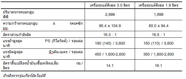มาพร้อมระบบคอมมอนเรลแรงดันสูงที่ฉีดเชื้อเพลิงที่แรงดันสูงสุดถึง 250 เมกะปาสกาล (MPa) และ VGS เทอร์โบที่ควบคุมด้วยระบบอิเล็กทรอนิกส์ มีการเคลือบฉนวนที่ลูกสูบและเกียร์ Double-scissors ที่ช่วยลดเสียงรบกวน สิ่งเหล่านี้ถูกรวมอยู่ในเครื่องยนต์จึงทำให้สามารถเพิ่มแรงบิดในรอบต่ำ ให้สมรรถนะการขับขี่ที่ทรงพลัง มีอัตราสิ้นเปลืองน้ำมันต่ำ และช่วยลดเสียงรบกวน