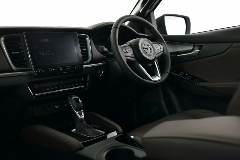 ภายในถูกออกแบบให้สอดคล้องกับธีมการออกแบบภายนอก โดยผสมผสานระหว่างภาพลักษณ์ที่โดดเด่นของมาสด้า กับความทนทานและทรงพลังของรถปิกอัพ การออกแบบคอนโซลในแนวราบที่ขยายออกไปถึงประตูทั้งสองด้าน ทำให้ห้องโดยสารมีความสะดวกสบายและมีพื้นที่กว้างขวาง คอนโซลหน้าที่ดูแข็งแรง และช่องแอร์ ก็ยังช่วยเพิ่มความรู้สึกที่แข็งแกร่งและทรงพลังให้กับรถปิกอัพ แผงคอนโซลหน้ามาพร้อมกับแผ่นรองหัวเข่าและใช้การออกแบบที่เน้นผู้ขับขี่เป็นศูนย์กลางอันเป็นเอกลักษณ์ของมาสด้า และสุดท้าย การเดินตะเข็บด้ายอย่างพิถีพิถันบนแผงหน้าปัด คอนโซลหน้า และแผ่นรองหัวเข่า ก็ช่วยเพิ่มสัมผัสถึงคุณภาพของการตกแต่งภายในห้องโดยสาร