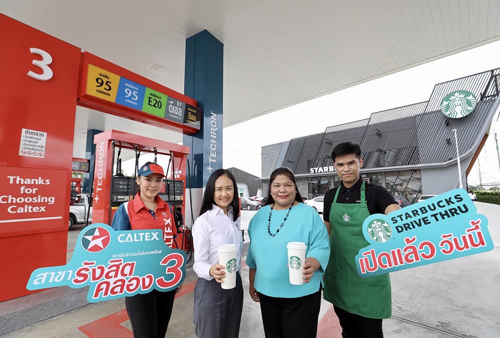 นางอลิซ พอตเตอร์ ประธานกรรมการและผู้จัดการใหญ่ บริษัท เชฟรอน (ไทย) จำกัด ผู้ให้บริการสถานีบริการน้ำมันคุณภาพระดับโลก ภายใต้แบรนด์ “คาลเท็กซ์” ร่วมกับ นางเนตรนภา ศรีสมัย กรรมการผู้จัดการ สตาร์บัคส์ ประเทศไทย ผู้นำด้านวัฒนธรรมการดื่มกาแฟที่เป็นเอกลักษณ์ ฉลองการเปิดร้านกาแฟสตาร์บัคส์ (Starbucks) ในสถานีบริการน้ำมันคาลเท็กซ์ สาขารังสิต คลอง 3 (บจก. ดาวธัญบุรี) พร้อมบริการแบบไดร์ฟ ทรู (Drive Thru) รวดเร็ว ทันใจ รับความหอมกรุ่นทุกเมนู เปิดให้บริการทุกวัน ตั้งแต่ 06.00 – 21.00 น. โดยถือเป็นอีกหนึ่งความร่วมมือครั้งสำคัญกับพันธมิตรทางธุรกิจ ภายใต้กลยุทธ์ทางธุรกิจ Smart Partnership ในการเสริมสร้างความสุข พร้อมความสะดวกสบายแบบครบวงจร ตอบโจทย์ไลฟ์สไตล์ของผู้บริโภคยุคใหม่ในปัจจุบัน ภายใต้แนวความคิด “เติมสุขทุกเส้นทางกับคาลเท็กซ์”