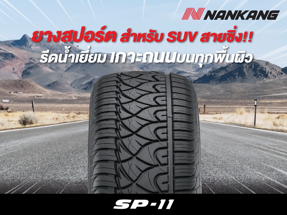 ยางนันกังไทร์ เปิดตัวยางรุ่นใหม่ล่าสุด SP-11 สำหรับรถกระบะ และรถ SUV ที่ชื่นชอบการขับขี่แบบสปอร์ต ฉีกทุกกฏของการออกแบบ ด้วยการออกแบบลายดอกยางแบบไม่สมมาตร ช่วยเพิ่มประสิทธิภาพการรีดน้ำและการยึดเกาะบนถนนเปียกได้เป็นอย่างดี รวมถึงทั้งการออกแบบบล็อกดอกยางที่มีความแข็งแกร่งและลาดเอียงช่วยเพิ่มประสิทธิภาพการเข้าโค้งได้อย่างดีเยี่ยม และช่วยลดเสียงรบกวนขณะขับขี่ด้วยร่องยางขนาดเล็กบริเวณหน้ายาง