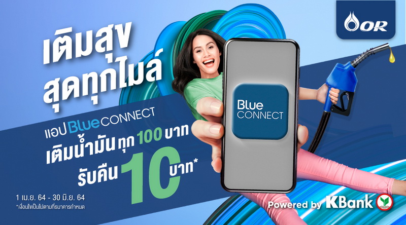 ใช้งานง่าย สะดวก ปลอดภัยแบบนี้ รู้แล้วรีบโหลดแล้วชวนกันมาร่วมสังคมไร้เงินสดกับ Blue CONNECT พร้อมรับโปรโมชั่นพิเศษระหว่าง 1 เมษายน 2564 – 30 มิถุนายน 2564 สำหรับลูกค้าที่ชำระค่าน้ำมันผ่าน e-Wallet จากแอปพลิเคชัน Blue CONNECT ใน PTT station สาขาที่ร่วมรายการ เมื่อเติมน้ำมันครบทุก ๆ 100 บาทขึ้นไป/รายการ รับเงินคืนทันที 10 บาท แต่ไม่เกิน 50 บาท/รายการ และสูงสุด 100 บาท/ท่าน/เดือน โดยธนาคารจะโอนเงินคืนเข้าบัญชี Blue CONNECT ของท่าน จำกัดเฉพาะลูกค้า 300,000 สิทธิ์แรกเท่านั้น!! ตรวจสอบรายละเอียดและเงื่อนไขเพิ่มเติมได้ที่ K-Contact Center 02-8888888 หรือ www.kasikornbank.com/PTTBlueCONNECT5