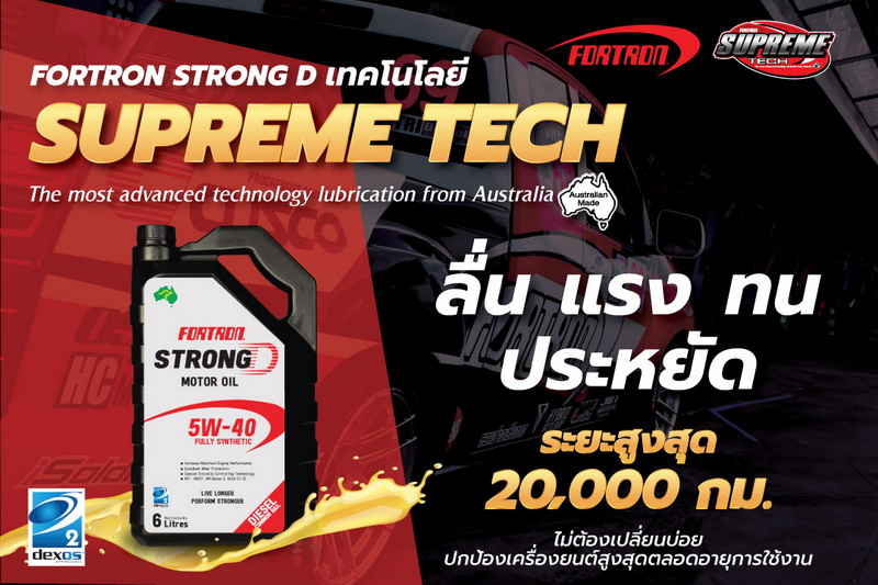 เติมเต็มพลังให้เครื่องยนต์ช่วยแรงขับเคลื่อนได้อย่างเต็มสมรรถนะด้วย FORTRON STRONG D LONG LIFE PERFORMANCE 5W-40 น้ำมันเครื่องเกรดใหม่จาก FORTRON ดีเซลสังเคราะห์แท้ 100% คุณภาพสูงสุด จากประเทศออสเตรเลีย เราพร้อมคัดสรรน้ำมันเครื่องทุกหยดให้ได้คุณภาพอย่างดีเยี่ยม ด้วยเทคโนโลยีขั้นสูงสุดของ SUPREME TECH ตอบโจทย์ทุกไลฟ์สไตล์ของเหล่านักขับสายดีเซล ดีเซลคอมมอนเรล