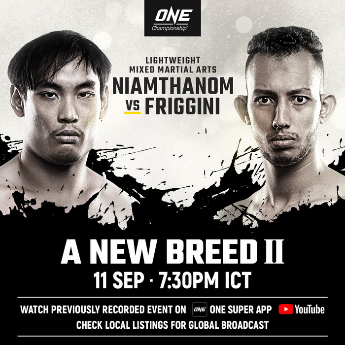 ศึก ONE: A NEW BREED II วันศุกร์ที่ 11 กันยายนนี้ จะออกอากาศบันทึกการแข่งขันไปสู่แฟนๆ กว่า 150 ประเทศทั่วโลก ทาง ONE Super App, YouTube ONE Championship และ AIS PLAY ซึ่งจะเริ่มเวลา 19.30 น. ส่วนไทยรัฐทีวี ช่อง 32 จะเริ่มเวลา 22.40 น.