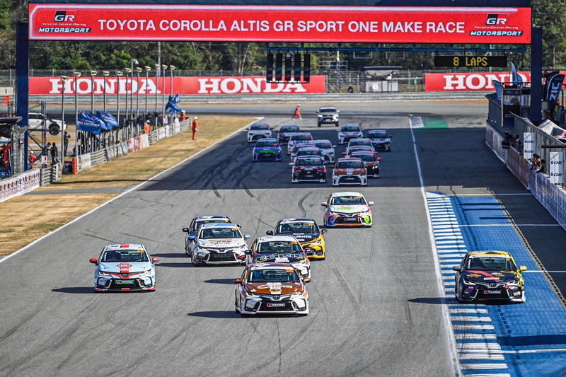 เร่งดีกรีความมันส์ด้วยเสียงแผดร้องก้องกังวาลจากปลายท่อไอเสียของเครื่องยนต์ Dual VVT-i 1,800 ซีซี ในรุ่น“Corolla ALTIS GR Sport One Make Race” บนโครงสร้างตัวถัง TNGA ซึ่งเป็นไฮไลท์ประจำการแข่งขัน แชมป์ประจำสนามตกเป็นของ อะกิ จิตรานุวัฒน์ ตามมาด้วย อันดับ 2 Kentaro Chiba อันดับ 3 เป็นของ ศักดิ์ชัย เยี่ยมวัฒนา อันดับ 4 นรรัศมิ์ อภิวาท และ อันดับ 5 อัฐพล แก้วอาษา บรรยาการการแข่งขันตลอด 8 รอบสนามเต็มไปด้วยความดุเดือด นับจากทะยานออกจากจุดสตาร์ท ด้วยความแม่นยำจากฝีมือการขับของนักแข่ง สะกดผู้ชมให้เกาะติดขอบสนามด้วยความเร้าใจ แสดงให้เห็นสมรรถนะ ความทนทาน สมศักดิ์ศรีรถซีดานยอดนิยมของคนไทย และคนทั่วโลก