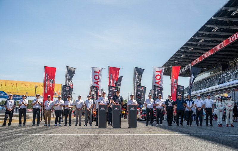 “นอกจากนี้ ผมขอประกาศอีกไฮไลท์สำคัญของปีนี้นั่นคือ รถ CP ROOKIE PRIUS CNF-HEV GR Concept ที่ใช้เชื้อเพลิงซึ่งมีความเป็นกลางทางคาร์บอน พร้อมกับการต้อนรับนักแข่งท่านใหม่ คุณขจร เจียรวนนท์ กรรมการผู้จัดการใหญ่ บริษัท ทรู ลีสซิ่ง จำกัด ในส่วนของทีม Toyota Gazoo Racing Thailand ร่วมแข่งขันรายการนี้ ด้วย TOYOTA 86 – ALTIS และ YARIS ใช้เชื้อเพลิงที่มีความเป็นกลางทางคาร์บอนเช่นกัน นอกจากความสนุกในสนามแข่ง เรายังจัดแสดงนิทรรศการเพื่อความเป็นกลางทางคาร์บอน เช่น สถานีเติมไฮโดรเจนแบบเคลื่อนที่ ตลอดจนกิจกรรมมากมายจากพาร์ทเนอร์ที่มีจุดยืนร่วมกัน รวมทั้งโซนนิทรรศการโดย CJPT ซึ่งท่านจะได้ร่วมสัมผัสโดรนพลังงานไฮโดรเจนภายในงานนี้ ขอขอบคุณพาร์ทเนอร์ ผู้สนับสนุนอย่างเป็นทางการ และนักแข่งทุกท่าน ขอให้เพลิดเพลินไปกับจิตวิญญาณแห่งมอเตอร์สปอร์ตภายในงานของเราตลอดสุดสัปดาห์นี้” มร.โนริอากิ ยามาชิตะ กล่าวต่อหน้าผู้ชมแน่นสนาม