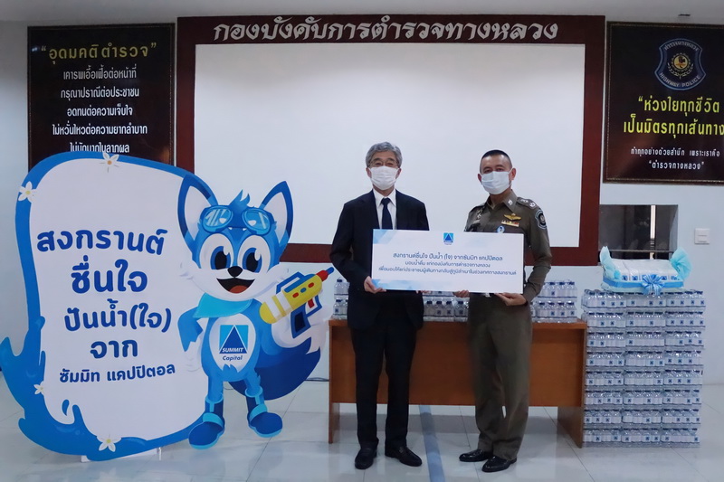 นายโคจิ ชิกะ ประธานบริษัทและประธานเจ้าหน้าที่บริหาร บริษัท ซัมมิท แคปปิตอล ลีสซิ่ง จำกัด กล่าวว่า ในช่วงเทศกาลสงกรานต์ เป็นช่วงเวลาแห่งการเฉลิมฉลองที่สำคัญเทศกาลหนึ่งของคนไทย อีกทั้งยังเป็นวันครอบครัว จึงเป็นโอกาสดีที่ทุกคนจะได้เดินทางกลับบ้านเพื่อไปเฉลิมฉลองเทศกาลปีใหม่ไทยกับครอบครัว ทางซัมมิท แคปปิตอล มีความห่วงใยตำรวจทางหลวงที่ต้องปฏิบัติหน้าที่กันอย่างเข้มงวด และอำนวยความสะดวกด้านการจราจร เพื่อให้ผู้ใช้รถใช้ถนนได้เดินทางกลับบ้านในช่วงเทศกาลสงกรานต์อย่างปลอดภัย จึงริเริ่มโครงการ “สงกรานต์ชื่นใจ ปันน้ำ (ใจ) จาก ซัมมิท แคปปิตอล” ในการมอบน้ำดื่มจำนวน 1,200 ขวด แทนความห่วงใย และสนับสนุนการปฏิบัติหน้าที่ของตำรวจทางหลวงรวมถึงแจกจ่ายให้กับประชาชนผู้ใช้ทางหลวงในการเดินทางกลับสู่ภูมิลำเนาในช่วงเทศกาลสงกรานต์ พร้อมทั้งมอบอุปกรณ์ป้องกันโควิด-19 ให้กับเจ้าหน้าที่ตำรวจทางหลวง เช่น เจลแอลกอฮอล์ และหน้ากากผ้า เนื่องจากสถานการณ์การแพร่ระบาดของเชื้อไวรัสโคโรน่า 2019 จึงยังต้องเฝ้าระวังและป้องกันอย่างเข้มงวดต่อไป