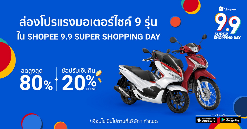 ในปัจจุบันที่วิถีชีวิตของผู้คนเริ่มเข้าสู่ความปกติใหม่หรือนิวนอร์มัล ไม่ว่าจะซื้อหาอะไร ก็สามารถค้นหาได้ง่ายๆ ผ่านช่องทางออนไลน์ ไม่เว้นแต่รถมอเตอร์ไซค์ ซึ่ง ช้อปปี้ ผู้นำอีคอมเมิร์ซแพลตฟอร์มในภูมิภาคเอเชียตะวันออกเฉียงใต้และไต้หวัน นับเป็นอีคอมเมิร์ซแพลตฟอร์มเจ้าแรกของเมืองไทยที่ได้บุกเบิกการจัดจำหน่ายรถมอเตอร์ไซค์ โดยตั้งแต่เริ่มวางจำหน่ายก็ได้รับการตอบรับที่ดีจากหนุ่มนักช้อป และในโอกาสเฉลิมฉลองวาระช้อปออนไลน์แห่งชาติอย่าง Shopee 9.9 Super Shopping Day ช้อปปี้ จึงขอแนะนำมอเตอร์ไซค์ 9 รุ่นท๊อปจากแบรนด์ดัง อาทิ Honda, Yamaha, DECO, Ryuka ที่พร้อมให้หนุ่มๆสายไบเกอร์ได้เป็นเจ้าของด้วยโปรโมชั่นที่ดีที่สุด อาทิ สินค้าในหมวดยานต์ลดสูงสุด 80% โค้ดรับเงินคืน 20% Shopee Coins เริ่มที่: