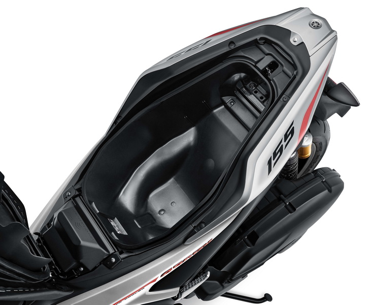นอกจากนี้ New YAMAHA AEROX ยังเพียบพร้อมด้วย SMART FEATURES ฟังก์ชันใช้งานเหนือขั้น ไม่ว่าจะเป็น SMART KEY SYSTEM ระบบกุญแจรีโมทอัจฉริยะ สะดวกสบายในการเปิดหรือปิด สตาร์ทหรือดับเครื่องยนต์ / ปลดล็อกแฮนด์ / ปลดล็อกเบาะ / ปลดล็อกฝาถังน้ำมัน พร้อมสัญญาณ ANSWER BACK, ช่องเสียบต่อชาร์จแบตเตอรี่มือถือ A/C CHARGING SOCKET ป้องกันแบตฯ มือถือหมด ช่วยให้ไม่พลาดทุกการติดต่อ และช่องเก็บของด้านหน้าพร้อมฝาปิด และยังมี MEGA BOX ที่เก็บของใหญ่ ขนาด 25 ลิตร เก็บของได้จุใจ ใส่หมวกกันน็อกแบบเต็มใบได้