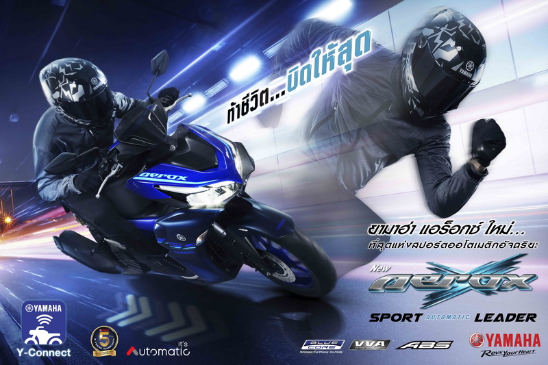 บริษัท ไทยยามาฮ่ามอเตอร์ จำกัด ตอกย้ำความเป็นผู้นำรถจักรยานยนต์ออโตเมติกของเมืองไทยครั้งใหม่! พร้อมกระตุ้นตลาดรถจักรยานยนต์ให้คึกคักยิ่งขึ้น ด้วยการส่งรถจักรยานยนต์ “New YAMAHA AEROX” ท้าชีวิต…บิดให้สุด Spice up your challenge! ดีไซน์สปอร์ตรอบคัน ดุดันตามแบบฉบับรถ Super Sport ตระกูล R-Series สมรรถนะทรงพลังด้วยความแรงจากเครื่องยนต์บลูคอร์ 155 ซีซี ผสานวาล์วแปรผันอัจฉิรยะ VVA พร้อมเทคโนโลยีใหม่ Y-Connect เชื่อมต่อข้อมูลรถเพื่อตอบสนองในการใช้งาน และมั่นใจในการรับประกันมากกว่า ถึง 5 ปี หรือ 50,000 กิโลเมตร