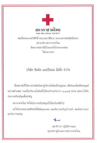 คุณโยซูเกะ อูนิกาเมะ กล่าวว่า “ที่ผ่านมา ซัมมิท แคปปิตอล ให้ความสำคัญของการช่วยเหลือชีวิตเพื่อนมนุษย์ที่จำเป็นต้องการใช้โลหิต และส่งต่อโลหิตเพื่อนำไปใช้ช่วยชีวิตผู้ป่วยทั่วประเทศที่ต้องการเลือด โดยร่วมกับ ศูนย์บริการโลหิตแห่งชาติ สภากาชาดไทย จัดกิจกรรมบริจาคโลหิตตั้งแต่ปี พ.ศ. 2565 โดยเปิดหน่วยรับบริจาคประจำทุกๆ 3 เดือนมาอย่างต่อเนื่อง ซึ่งผู้ร่วมบริจาคโลหิตประกอบด้วย ผู้บริหาร พนักงาน ตลอดจนพนักงานภายในอาคารอื้อจือเหลียง และประชาชนในพื้นที่ใกล้เคียง เพื่อเป็นอีกหนึ่งช่องทางในการช่วยเพิ่มคลังเลือดให้เพียงพอต่อความต้องการ ดังนั้นรางวัลนี้ไม่ใช่เพียงการยกย่ององค์กร แต่คือเครื่องยืนยันถึงความมุ่งมั่นร่วมกันของผู้บริหารและพนักงานทุกคน ที่พร้อมสานต่อเจตนารมณ์ของซัมมิท แคปปิตอล ในการทำธุรกิจควบคู่กับการสร้างสังคมที่เข้มแข็งและยั่งยืน”