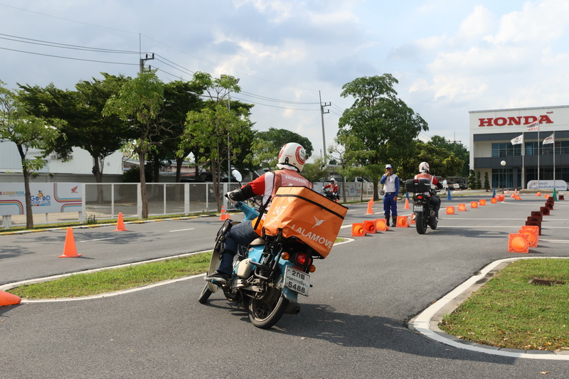 สำหรับหลักสูตรขับขี่ปลอดภัยครั้งนี้ เสริมสร้างความรู้พื้นฐานและเทคนิคพิเศษในการขับขี่ที่ออกแบบมาโดยเฉพาะสำหรับไรเดอร์ส่งสินค้า ให้สามารถขับขี่พร้อมบรรทุกกระเป๋า Lalamove เพื่อส่งมอบสินค้าและพัสดุต่าง ๆ ถึงมือลูกค้าได้อย่างปลอดภัย โดยประกอบด้วยความรู้พื้นฐานในการขับขี่ การตรวจเช็คสภาพและการดูแลรถเบื้องต้น การเบรกกระทันหัน (Panic Brake) การขับขี่หลบหลีกสิ่งกีดขวาง (Pylon Slalom) การเข้าโค้ง (Offset Slalom) การทรงตัวความเร็วต่ำ (Narrow Plank) การทรงตัวบนทางแคบและลูกระนาด การขับขี่ทรงตัวพาหนะเมื่อมีการบรรทุกสินค้า เป็นต้น โดยไรเดอร์นำรถจักรยานยนต์ฮอนด้าของตนที่ติดตั้งกระเป๋าบรรทุกสินค้าของ Lalamove มาเข้าฝึกอบรมเพื่อจำลองสภาพการขับขี่ขนส่งเดลิเวอร์รี่จริงที่ไรเดอร์ต้องขับขี่ในชีวิตประจำวัน