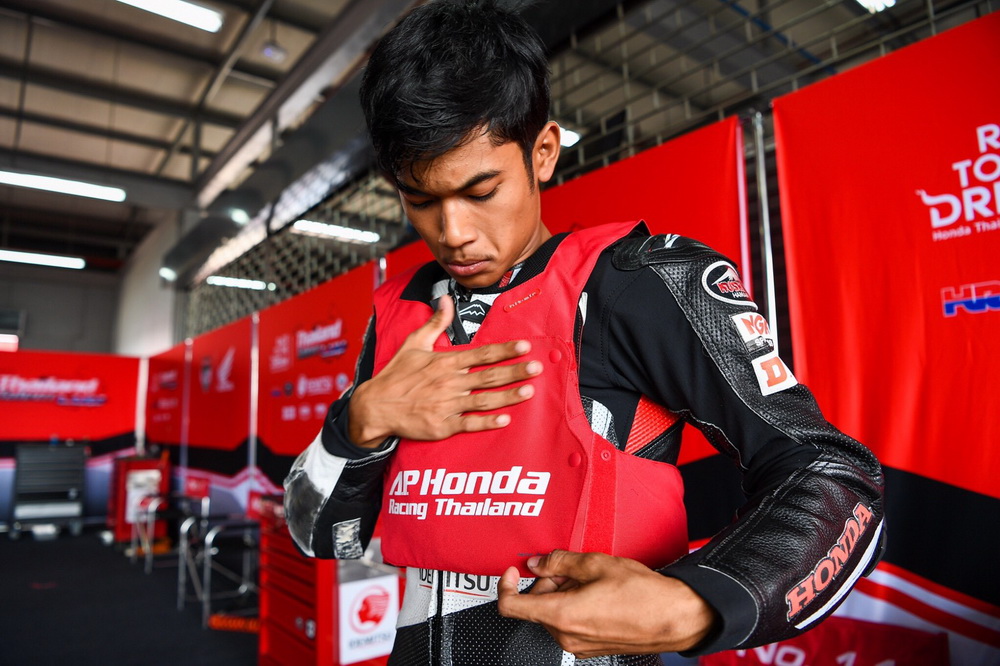 เหนืออื่นใดในปีนี้ เอ.พี. ฮอนด้า ได้ยกระดับมาตรฐานใหม่ด้านความปลอดภัยเป็นครั้งแรกในไทย กับชุดแอร์แบ็กนำเข้าจากญี่ปุ่น เพิ่มความปลอดภัยให้กับนักบิดดาวรุ่งเทียบเท่ามาตรฐานนักแข่งโมโตจีพี ตามประกาศของ FIM ซึ่งออกกฏชัดเจนว่านักแข่งทุกรุ่นต้องสวมชุดเรซซิ่งสูทที่มีระบบแอร์แบ็กด้วย