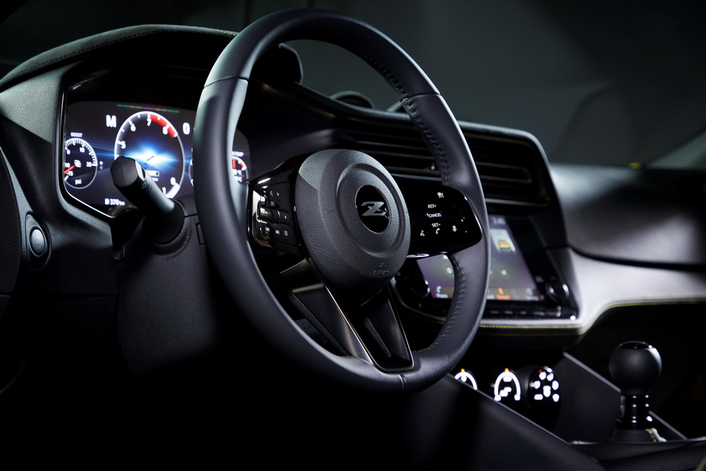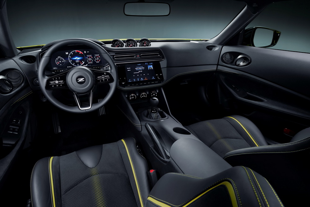 ทีมออกแบบภายในได้ขอคำแนะนำจากตำนานของวงการมอเตอร์สปอร์ตอาชีพเพื่อให้ Z Proto มีห้องโดยสารที่เป็นของรถสปอร์ตในอุดมคติที่ทั้งสำหรับวิ่งบนถนนและในสนามแข่ง สิ่งเหล่านี้สามารถเห็นได้จากแผงหน้าปัดของ Z ข้อมูลสำคัญทั้งหมดจะแสดงผ่านจอดิจิตอลขนาด 12.3 นิ้ว ซึ่งถูกจัดเรียงเพื่อช่วยให้ผู้ขับขี่เข้าใจได้อย่างรวดเร็ว อาทิ เส้น redline สำหรับเปลี่ยนเกียร์ที่ตำแหน่งสิบสองนาฬิกา
