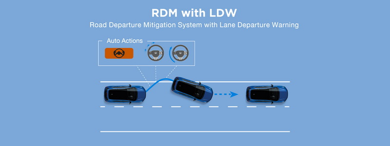- ระบบเตือนและช่วยควบคุมเมื่อรถออกนอกช่องทางเดินรถ (Road Departure Mitigation System with Lane Departure Warning: RDM with LDW)