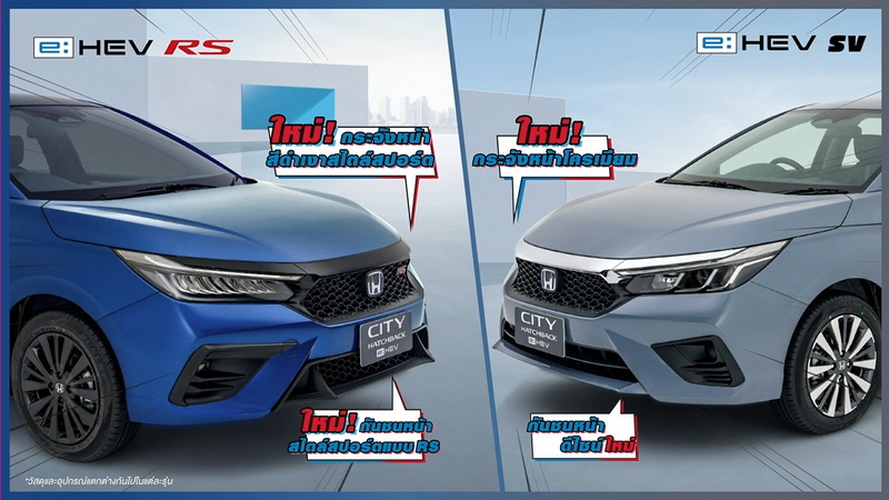 - พร้อมเพิ่มรุ่นย่อยใหม่ e:HEV SV เพื่อเป็นทางเลือกให้ลูกค้าได้สัมผัสประสบการณ์การขับขี่เทคโนโลยีฟูลไฮบริดจากฮอนด้าในรถซิตี้คาร์ ในราคาที่เข้าถึงได้ง่ายขึ้น