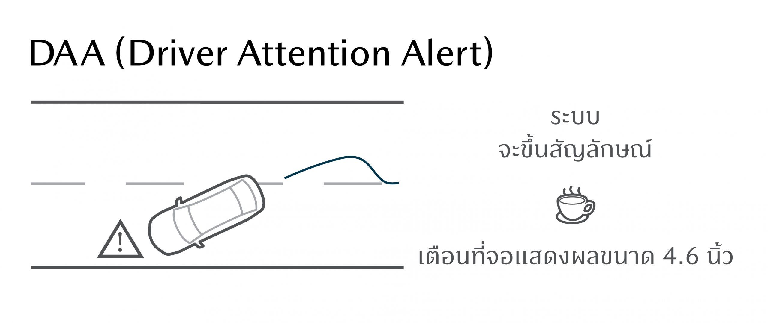 ✔ ระบบเตือนเมื่อผู้ขับขี่เหนื่อยล้าขณะขับขี่ (Driver Attention Alert)