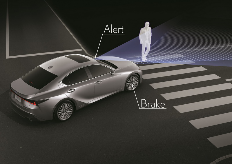 – ระบบ Pre-Collision System…ระบบป้องกันก่อนการชน โดยระบบจะช่วยเพิ่มแรงเบรกและช่วยเบรกอัตโนมัติ เมื่อตรวจจับพบรถยนต์ที่อาจเกิดการปะทะขึ้น รวมถึงการตรวจจับคนเดินถนนและจักรยานด้วย (เฉพาะรุ่น Premium และ F-Sport )
