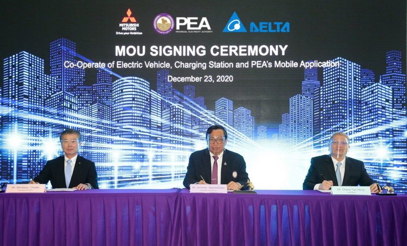 การไฟฟ้าส่วนภูมิภาค (กฟภ.) ร่วมกับ บริษัท มิตซูบิชิ มอเตอร์ส (ประเทศไทย) จำกัด และเดลต้า อีเลคโทรนิคส์ (ประเทศไทย) ได้ลงนามบันทึกความเข้าใจ (เอ็มโอยู) เพื่อความร่วมมือระหว่าง 3 ฝ่าย ด้านยานยนต์ไฟฟ้า (EV) สถานีชาร์จ และแอปพลิเคชันของ กฟภ. สำหรับการชาร์จรถยนต์ไฟฟ้า