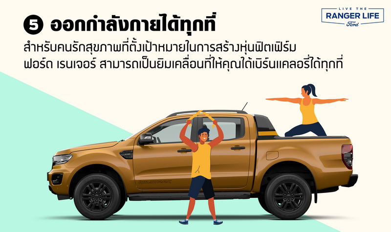 นอกจากเป้าหมายสำคัญในการดูแลตนเองเพื่อสุขภาพที่แข็งแรงแล้ว การทำกิจกรรมกลางแจ้งที่ท้าทายก็เป็นอีกปัจจัยที่ช่วยพัฒนาร่างกายและจิตใจ เป็นการเปิดประสบการณ์ใหม่ๆ ให้ชีวิต สำหรับการออกไปใช้ชีวิตให้สนุกและมีความสุข การมีคู่หูที่พร้อมพาคุณออกไปลุยได้ในทุกๆที่ อย่าง ฟอร์ด เรนเจอร์ ยิ่งช่วยให้บรรลุทุกเป้าหมายได้ง่ายยิ่งขึ้น ด้วยศักยภาพรอบด้านและสมรรถนะที่พร้อมรับมือกับทุกสถานการณ์ รองรับทุกการใช้งานในชีวิตประจำวันและไลฟ์สไตล์ที่หลากหลายได้เป็นอย่างดี ฟอร์ด มีไอเดียและเคล็ดลับง่ายๆ ที่จะทำให้คุณสามารถพิชิตทุกเป้าหมายไปกับฟอร์ด เรนเจอร์ ได้ในทุกเส้นทาง