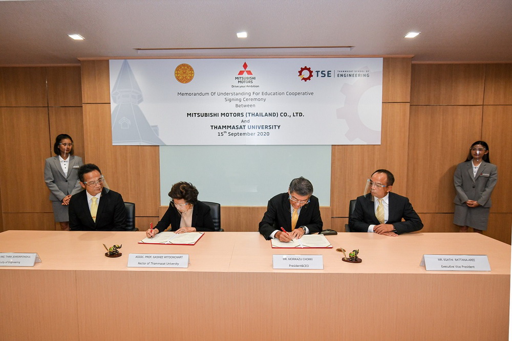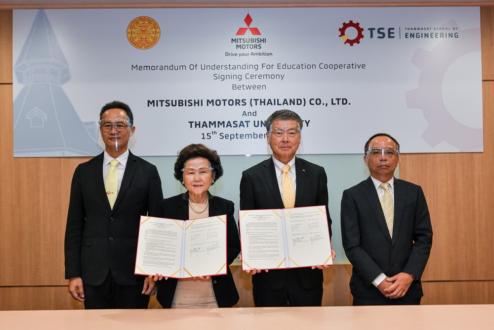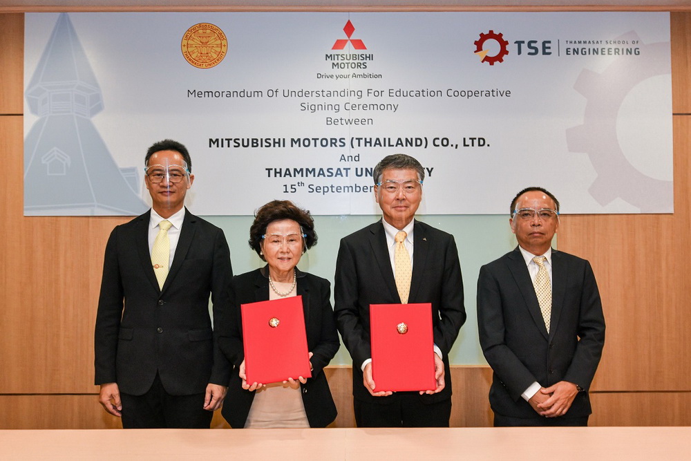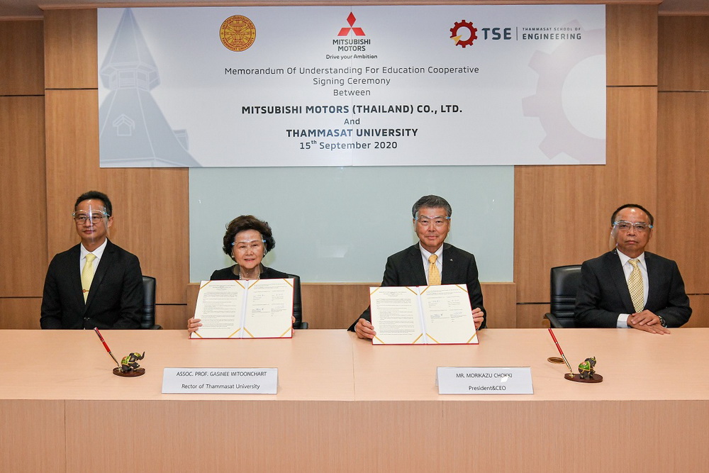 บริษัท มิตซูบิชิ มอเตอร์ส (ประเทศไทย) จำกัด เดินหน้าสานต่อโครงการเพื่อสนับสนุนการศึกษาอย่างต่อเนื่อง ล่าสุด มร. โมะริคาซุ ชกกิ กรรมการผู้จัดการใหญ่ บริษัท มิตซูบิชิ มอเตอร์ส (ประเทศไทย) จำกัด และรศ.เกศินี วิฑูรชาติ อธิการบดีมหาวิทยาลัยธรรมศาสตร์ ร่วมพิธีลงนามในบันทึกข้อตกลงความร่วมมือ (MOU) สนับสนุนทุนการศึกษา และโครงการฝึกงานแก่นักศึกษาชั้นปีที่ 3 และชั้นปีที่ 4 ที่มีผลการเรียนดีเด่น สาขาวิศวกรรมเทคโนโลยียานยนต์ คณะวิศวกรรมศาสตร์ มหาวิทยาลัยธรรมศาสตร์ เพื่อเป็นการมอบโอกาสในการศึกษา และสนับสนุนให้นักศึกษาได้มีประสบการณ์ในการปฏิบัติงานจริงด้วยการเรียนรู้แบบบูรณาการจากการทำงาน (Work Integrated Learning – WIL) นอกจากนี้ โครงการนี้ยังเปิดโอกาสให้นักศึกษาที่ได้รับทุนการศึกษา ทำงานร่วมกับมิตซูบิชิ มอเตอร์ส ประเทศไทย ต่อไปในอนาคตอีกด้วย