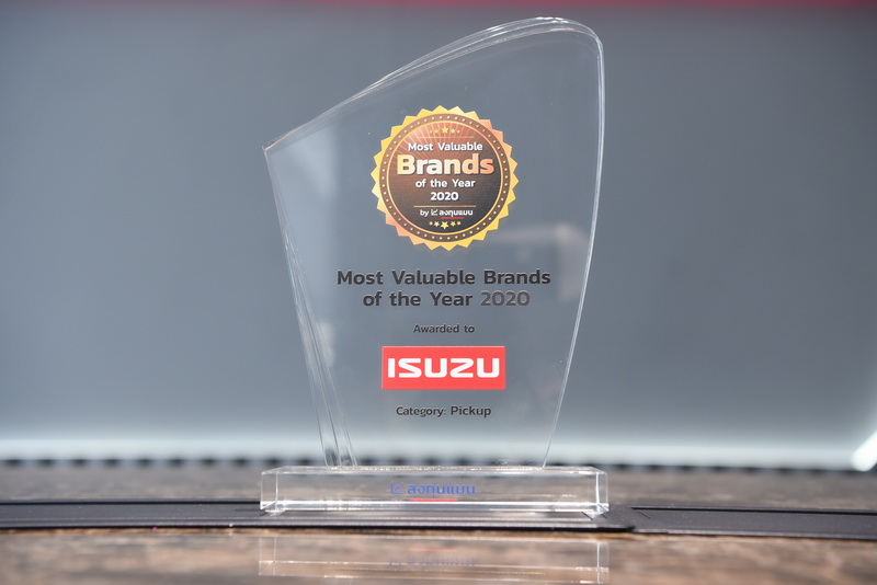 มร.โทชิอากิ มาเอคาวะ กรรมการผู้จัดการ และคุณปนัดดา เจณณวาสิน กรรมการรองผู้จัดการ บริษัท ตรีเพชรอีซูซุเซลส์ จำกัด รับมอบรางวัล อีซูซุ “แบรนด์ที่มีมูลค่ามากสุดใน ประเทศไทยปี 2020” (Most Valuable Brands of the Year 2020) หมวดรถกระบะ จาก ลงทุนแมน สื่อด้านธุรกิจ การเงิน และการตลาด ที่มีผู้ติดตามกว่า 1 ล้านคนในประเทศไทย โดยใช้เกณฑ์การตัดสินจากมูลค่าส่วนแบ่งการตลาดที่มากที่สุด ซึ่งอีซูซุครองอันดับ 1 ในตลาดรถกระบะของเมืองไทยในช่วง 6 เดือนแรกของปีนี้ ด้วยส่วนแบ่งตลาดสูงกว่า 45%