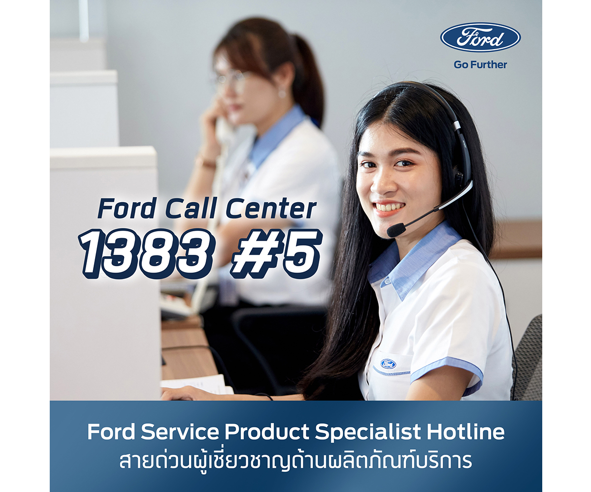 ฟอร์ด ประเทศไทย เดินหน้ายกระดับประสบการณ์ลูกค้าต่อเนื่อง ด้วยการเพิ่มบริการสายด่วนผู้เชี่ยวชาญด้านผลิตภัณฑ์บริการ ผ่านศูนย์บริการข้อมูลลูกค้าสัมพันธ์ฟอร์ด (Ford Call Center) โทร. 1383 ต่อหมายเลข 5 ให้ลูกค้าฟอร์ดติดต่อเจ้าหน้าที่ผู้เชี่ยวชาญด้านผลิตภัณฑ์บริการที่พร้อมรับฟัง ให้ข้อมูลและคำแนะนำด้านเทคนิค รวมทั้งช่วยประสานงานและดูแลการให้บริการลูกค้าอย่างรวดเร็ว ตั้งแต่เดือนกันยายน พ.ศ.2563 เป็นต้นไป