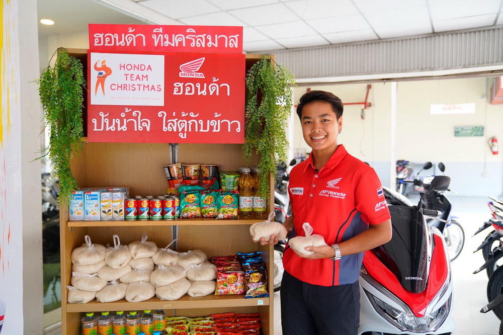 “มุกข์” มุกข์ลดา สารพืช ยอดนักบิดสาวแกร่งเบอร์หนึ่งของเอเชีย สังกัดทีมแข่ง เอ.พี. ฮอนด้า เรซซิ่ง ไทยแลนด์ นำข้าวสารและอาหารแห้งเติมใส่ตู้ปันสุข ณ ร้านผู้จำหน่ายรถจักรยานยนต์ฮอนด้าที่ร่วมโครงการ ‘มอไซค์ฮอนด้า ปันน้ำใจ ใส่ตู้กับข้าว’ หวังช่วยบรรเทาความเดือดร้อนให้กับผู้ที่ได้รับผลกระทบจากโควิด-19