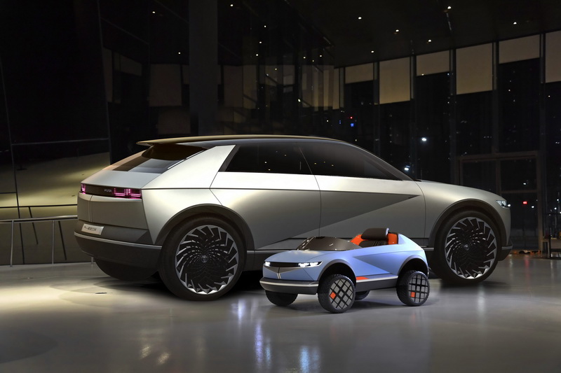 รูปลักษณ์ภายนอกของรถยนต์พลังงานไฟฟ้าขนาดจิ๋วพัฒนาจากรถยนต์ต้นแบบ ‘45’ ที่ฮุนไดได้จัดแสดงในงานอินเตอร์ เนชั่นแนล มอเตอร์โชว์ที่แฟรงเฟิร์ต ดีไซน์เนอร์ของฮุนไดได้นำตัวเอกลักษณ์ของไฟที่มีลักษณะเป็นก้อน และการจัดวางมุมที่ลงตัวของรถต้นแบบ ‘45’ มาสร้างสรรค์รถยนต์ไฟฟ้าที่ยังไม่ได้ตั้งชื่อ รวมทั้งยังเน้นให้ดูสปอร์ตด้วยตัวถังสีฟ้าตัดเส้นสีส้มที่โฉบเฉี่ยว