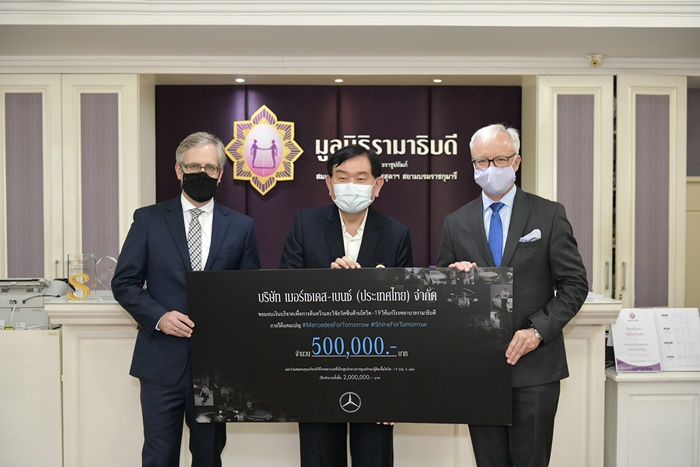 บริษัท เมอร์เซเดส-เบนซ์ (ประเทศไทย) จำกัด นำโดย มร. โรลันด์ โฟล์เกอร์ ประธานบริหาร และ มร. บีเยิร์น กุซเทรา รองประธานบริหารฝ่ายขายและการตลาด นำเงินบริจาค 500,000 บาท จากแคมเปญ “Shine for Tomorrow” ไปมอบให้แก่โรงพยาบาลรามาธิบดี เพื่อนำไปค้นคว้าวิจัยวัคซีนรักษาโรคโควิด-19 โดยมี ศ.นพ. พรชัย สิมะโรจน์ ผู้ช่วยคณบดีฝ่ายกิจการพิเศษ คณะแพทย์ศาสตร์ เป็นตัวแทนรับมอบ