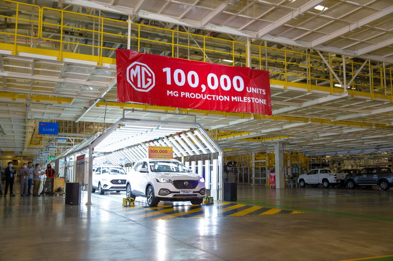 เมื่อเร็วๆ นี้ โรงงานผลิตรถยนต์เอ็มจีในประเทศไทยได้มียอดการผลิตสะสมครบ 100,000 คัน นับตั้งแต่การผลิตรถยนต์เอ็มจีรุ่นแรกในปี พ.ศ. 2557 โดยได้ผลิตรถยนต์เอ็มจีรุ่นต่างๆ ไปแล้ว 8 รุ่น ครอบคลุมทั้งรถยนต์นั่ง ได้แก่ MG6, MG 5, MG GS, MG 3, MG ZS, MG HS และรถกระบะ MG EXTENDER ซึ่งล่าสุดได้เริ่มผลิตรถยนต์ NEW MG HS PHEV รถยนต์ปลั๊กอินไฮบริดรุ่นแรกของเอ็มจี ซึ่งเตรียมเปิดตัวอย่างเป็นทางการในประเทศไทย และจัดแสดงต่อสาธารณชนเป็นครั้งแรก ที่งาน Fast Auto Show Thailand 2020 ในวันที่ 28 ตุลาคมนี้