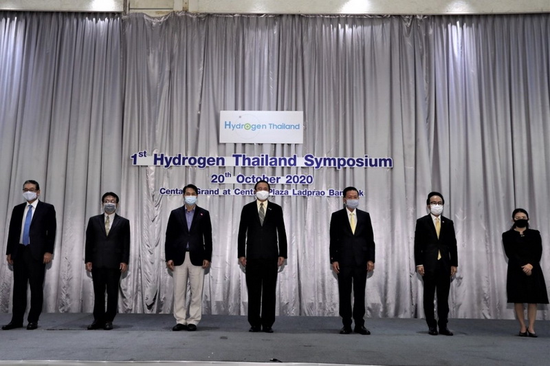 นายทวารัฐ สูตะบุตร หัวหน้าผู้ตรวจราชการกระทรวง สำนักงานปลัดกระทรวง กระทรวงพลังงาน นายนินนาท ไชยธีรภิญโญ ประธานคณะกรรมการ บริษัท โตโยต้า มอเตอร์ประเทศไทย จำกัด และ นายยูคิโอะ โยชิดะ ผู้ช่วยกรรมการผู้จัดการใหญ่ บริษัท โตโยต้าไดฮัทสุ เอ็นจิเนียริ่ง แอนด์ แมนูแฟคเจอริ่ง จำกัด พร้อมด้วยคณะผู้บริหารระดับสูงจากหน่วยงานภาครัฐ และเอกชน เข้าร่วมในงานสัมมนา “Hydrogen Thailand Symposium” ซึ่งจัดขึ้นโดยความร่วมมือกันระหว่างพันธมิตรจากทั้งหน่วยงานภาครัฐและเอกชน นำโดย บริษัท ปตท. จำกัด (มหาชน) บริษัท โตโยต้า มอเตอร์ ประเทศไทย จำกัด บริษัท โตโยต้าไดฮัทสุ เอ็นจิเนียริ่ง แอนด์ แมนูแฟคเจอริ่ง จำกัด กระทรวงพลังงาน สำนักงานพัฒนาวิทยาศาสตร์และเทคโนโลยีแห่งชาติ (สวทช.) บริษัท บางกอกอินดัสเทรียลแก๊ส จำกัด และ บริษัท มิตซุยแอนด์คัมปนี (ไทยแลนด์) จำกัด ที่มีมุมมองในการใช้ไฮโดรเจนเป็นแหล่งพลังงานเพื่อสร้างสังคมคาร์บอนต่ำในประเทศไทย พร้อมวัตถุประสงค์เพิ่อเป็นการเตรียมความพร้อมด้านเทคโนโลยีไฮโดรเจนสำหรับประเทศไทย ณ ห้องวิภาวดี บอลรูม โรงแรมเซ็นทารา แกรนด์ เมื่อวันที่ 20 ตุลาคม 2563 ที่ผ่านมา