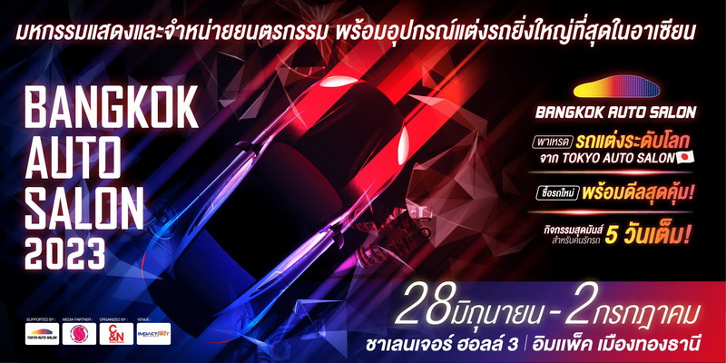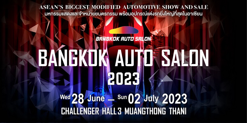 พบกับ มหกรรมแสดงและจำหน่ายยนตรกรรม พร้อมอุปกรณ์แต่งรถยิ่งใหญ่ที่สุดในอาเซียน ‘แบงค็อก ออโต ซาลอน 2023’ ตั้งแต่ วันที่ 28 มิถุนายน – วันที่ 2 กรกฎาคม 2566 ณ อาคารชาเลนเจอร์ฮอลล์ 3 อิมแพ็ค เมืองทองธานี ดูรายละเอียดเพิ่มเติมได้ทาง www.bangkokinternationalautosalon.com