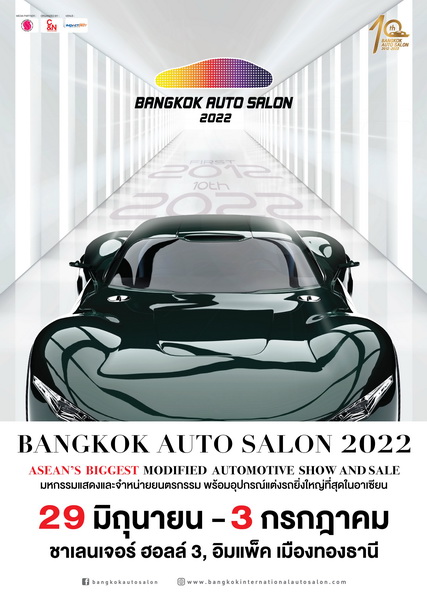 ห้ามพลาด ‘แบงค็อก ออโต ซาลอน 2022’ มหกรรมแสดงและจำหน่ายยนตรกรรมพร้อมอุปกรณ์ตกแต่งรถที่ยิ่งใหญ่ที่สุดในอาเซียน (ASEAN’S BIGGEST MODIFIED AUTOMOTIVE SHOW AND SALE) วันพุธที่ 29 มิถุนายน – วันอาทิตย์ที่ 3 กรกฎาคม 2565 ณ ชาเลนเจอร์ฮอลล์ 3 อิมแพ็ค เมืองทองธานี สอบถามรายละเอียดเพิ่มเติมได้ทาง www.bangkokinternationalautosalon.com
