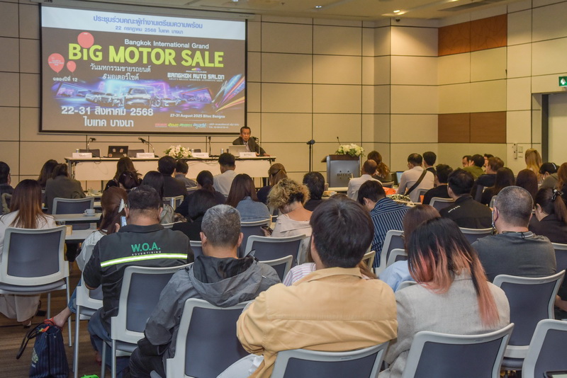 นายจรวย ขันมณี ประธานกรรมการบริหาร บริษัท ยานยนต์สแควร์ กรุ๊ป และ ประธานกรรมการอำนวยการจัดงาน BIG MOTOR SALE 2025 วันมหกรรมขายรถยนต์ &มอเตอร์ไซค์ พร้อมคณะทำงานจาก ยานยนต์สแควร์ กรุ๊ป, บริษัท เอ็น.ซี.ซี. อิมเมจ จำกัด และไบเทค ประชุมแถลงความพร้อมการจัดงาน ร่วมกับตัวแทนผู้แสดงงานทุกแบรนด์ ทุกประเภทยานยนต์ เริ่ม 22 – 31 สิงหาคม 2568 ที่ ไบเทค บางนา กรุงเทพฯ