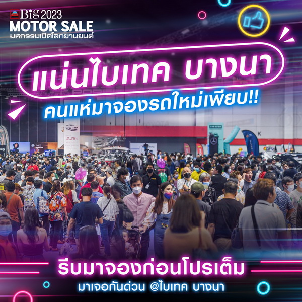 ขอเชิญทุกท่านเข้าชมงาน Big MOTOR SALE 2023 ได้ตั้งแต่วันศุกร์ที่ 25 สิงหาคม – วันอาทิตย์ที่ 3 กันยายน 2566 (วันธรรมดา 12.00 น. – 21.00 น./ วันเสาร์-อาทิตย์ 11.00 น. – 21.00 น.) ณ ศูนย์นิทรรศการและการประชุมไบเทค บางนา เดินทางสะดวกด้วยรถไฟฟ้า BTS ลงสถานีบางนา ใช้ทางออกประตู 1 เพื่อเดินเชื่อมต่อกับ Skywalk มายังฮอลล์ 101-104 บัตรเข้าชมงานราคา 100 บาท พร้อมพบกับกิจกรรมพิเศษสุดว้าว ทุกวัน ติดตามรายละเอียดเพิ่มเติมได้ที่ www.facebook.com/bigmotorsale.yanyont