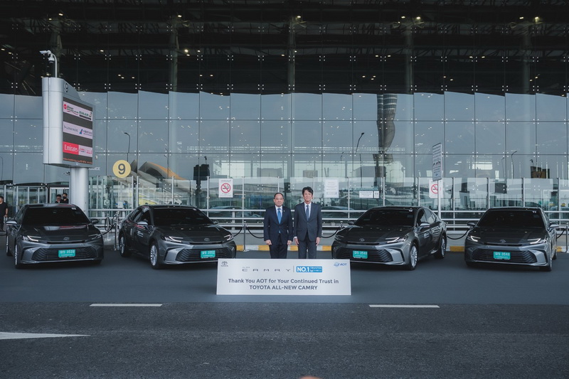 บริษัท โตโยต้า มอเตอร์ ประเทศไทย จำกัด ขอขอบคุณ บริษัท ท่าอากาศยานไทย จำกัด (มหาชน) หรือ AOT ที่มอบความไว้วางใจ ในการเลือกใช้ โตโยต้า คัมรี อย่างต่อเนื่อง ตลอด 19 ปี นับตั้งแต่เปิดทำการ เมื่อเดือนกันยายน พ.ศ 2549 และในปีพ.ศ. 2568 นี้ ทาง AOT ยังคงเชื่อมั่น และมอบความไว้ใจให้กับโตโยต้า โดยเลือกใช้ ALL-NEW CAMRY HEV SMART สีเงิน Precious Metal ใหม่จำนวน 50 คัน เพื่อเข้าร่วมเป็นส่วนหนึ่งของรถลีมูซีนประจำสนามบิน หรือ AOT Limousine ในการให้บริการรับส่งผู้โดยสารที่ท่าอากาศยานสุวรรณภูมิ อันเป็นการตอกย้ำความเชื่อมั่น และความไว้วางใจที่มีให้กับยนตรกรรมที่มาพร้อมเทคโนโลยีไฮบริดของโตโยต้า ที่สามารถมอบความสะดวกสบาย ทั้งยังปลอดภัยมั่นใจได้ ตลอดการใช้งาน ภายใต้แนวคิด “TOYOTA NO.1 TRUSTED HEV ไฮบริดที่ใช่มั่นใจทุกเจน”