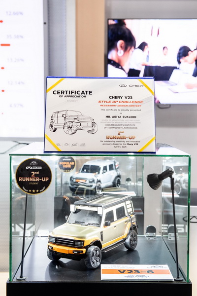 เชอรี ประเทศไทย ร่วมกับ สมาคมวิศวกรรมยานยนต์ไทย  บริษัท กรังด์ปรีซ์ อินเตอร์เนชั่นแนล จำกัด (มหาชน) และสมาคมผู้สื่อข่าวรถยนต์และรถจักรยานยนต์ไทย(สรยท.) จัดพิธีมอบรางวัลโครงการประกวดออกแบบอุปกรณ์ตกแต่งรถยนต์ “Chery V23 Style Up Challenge” อย่างเป็นทางการ ณ บูธรถยนต์ CHERY ภายในงาน บางกอก อินเตอร์เนชั่นแนล มอเตอร์โชว์ ครั้งที่ 47  อาคารชาเลนเจอร์ 1–3 อิมแพ็ค เมืองทองธานี เมื่อวันที่ 5 เมษายน 2569  ท่ามกลางบรรยากาศคึกคัก โดยมีผู้บริหาร พันธมิตรในอุตสาหกรรม และสื่อมวลชนร่วมเป็นสักขีพยาน
