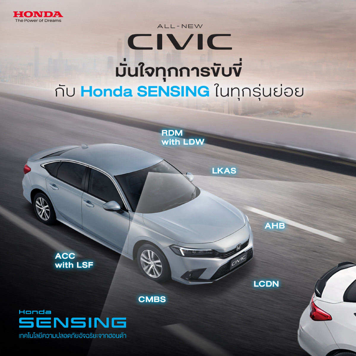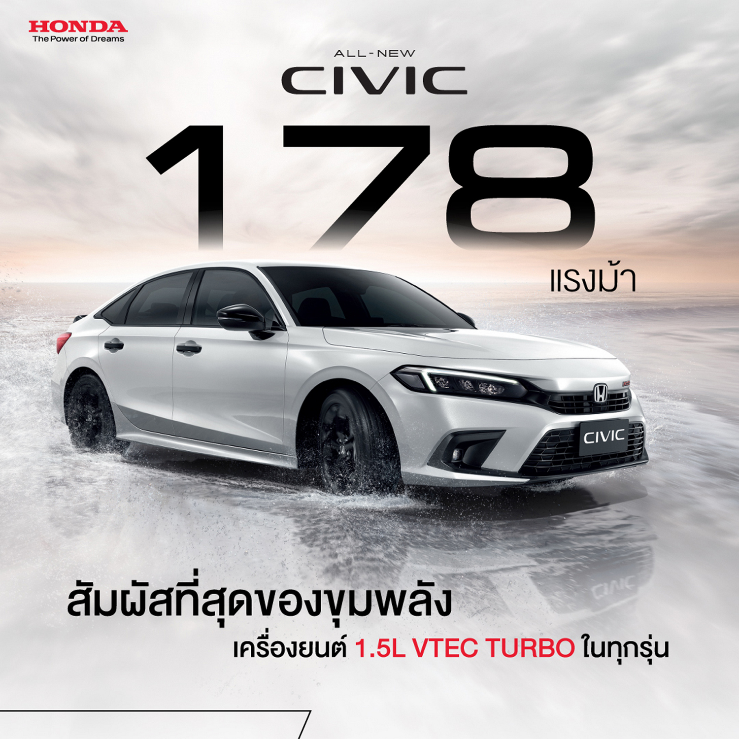 ฮอนด้า ซีวิค ใหม่ เจเนอเรชันที่ 11 ยกระดับประสบการณ์ความสมบูรณ์แบบในทุกมิติ โดดเด่นด้วยดีไซน์ภายนอกสปอร์ตพรีเมียมในทุกมุมมอง ภายในห้องโดยสารกว้างขวางสะดวกสบาย ให้ความแรงทรงพลังเร้าใจเกินใครในทุกรุ่นย่อย ด้วยขุมพลังเครื่องยนต์ VTEC TURBO 1.5 ลิตร ใหม่ พร้อมระบบเกียร์ CVT ให้กำลังสูงสุด 178 แรงม้า ให้อัตราการประหยัดน้ำมันดีเยี่ยม 17.2 กม./ลิตร และรองรับพลังงานทางเลือก E85 และมาพร้อมเทคโนโลยีความปลอดภัยอัจฉริยะ ฮอนด้า เซนส์ซิ่ง (Honda SENSING) ที่ยกระดับไปอีกขั้นกับระบบใหม่ ระบบเตือนเมื่อรถคันหน้าเคลื่อนที่ (Lead Car Departure Notification System: LCDN) ครบครันด้วยเทคโนโลยีเพื่อความสะดวกสบายและเทคโนโลยีความปลอดภัยอันล้ำสมัย และสะดวกสบายแบบเหนือกว่ากับครั้งแรกของระบบควบคุมประตูแบบอัจฉริยะพร้อม Honda Smart Key Card (เฉพาะรุ่น RS)