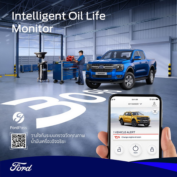 ในการเปิดตัวรถฟอร์ด เจเนอเรชันใหม่ ในประเทศไทย ฟอร์ดได้เดินหน้ายกระดับประสบการณ์ใช้งานของลูกค้า ด้วยการต่อยอดบริการที่มีอยู่เดิมไปสู่นวัตกรรมบริการแบบ Always-On ผ่านแอปพลิเคชัน FordPass โดยลูกค้าสามารถเช็กอายุการใช้งานน้ำมันเครื่องได้อย่างสะดวกและง่ายดาย ผ่านระบบตรวจวัดคุณภาพน้ำมันเครื่องอัจฉริยะ (Intelligent Oil Life Monitor – IOLM) ที่จะแจ้งเตือนบนหน้าปัดรถยนต์เมื่อถึงเวลาเปลี่ยนถ่ายน้ำมันเครื่องและไส้กรอง ระบบ IOLM ได้รับการออกแบบมาให้สามารถประมวลผลข้อมูลจากเซ็นเซอร์ในเครื่องยนต์และรูปแบบการขับขี่ได้อย่างแม่นยำ โดยแอปพลิเคชัน FordPass และหน้าปัดรถจะแสดงข้อความ ‘Change Engine Oil Soon’ เมื่อคุณภาพน้ำมันเครื่องลดลงเหลือ 5% ซึ่งลูกค้าสามารถเปลี่ยนถ่ายน้ำมันเครื่องเมื่อระดับคุณภาพน้ำมันเครื่องแสดงผลตั้งแต่ 30% ลงมา เพิ่มความสะดวกสบายพร้อมปกป้องเครื่องยนต์จากการใช้น้ำมันเครืองที่เสื่อมสภาพ โดยฟอร์ดมีคูปองฟรีค่าแรงบริการเปลี่ยนถ่ายน้ำมันเครื่องให้ 5 ครั้ง ไม่เกิน 72 เดือนหรือ 85,000 กิโลเมตร (แล้วแต่อย่างใดอย่างหนึ่งถึงก่อน)
