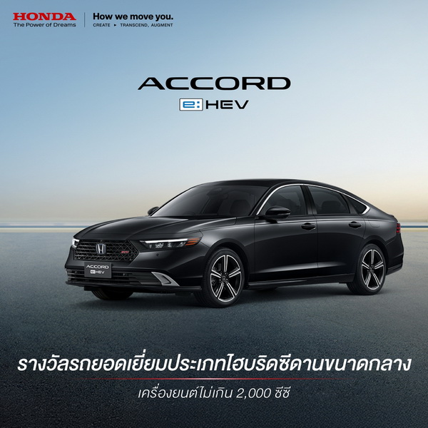 - ฮอนด้า แอคคอร์ด อี:เอชอีวี รุ่น e:HEV RS ยนตรกรรมสปอร์ตพรีเมียมซีดาน ได้รางวัลรถยอดเยี่ยมประเภทไฮบริดซีดานขนาดกลาง เครื่องยนต์ไม่เกิน 2,000 ซีซี (Best Mid-size Hybrid Sedan under 2,000c.)