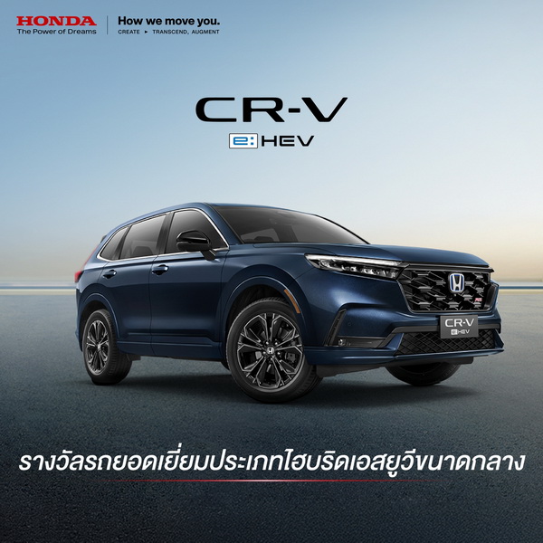 - ฮอนด้า ซีอาร์-วี รุ่น e:HEV RS ยนตรกรรมสปอร์ตพรีเมียมเอสยูวี ได้รางวัลรถยอดเยี่ยมประเภทไฮบริดเอสยูวีขนาดกลาง (Best Mid-size Hybrid SUV)