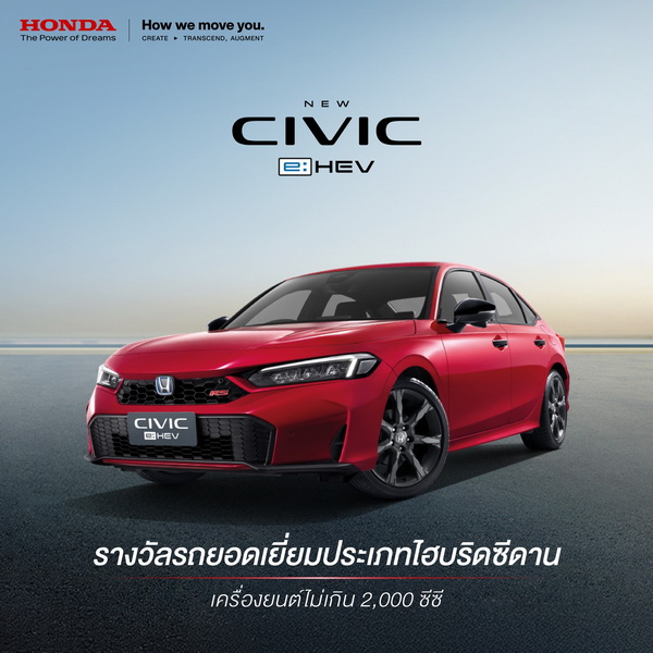 - ฮอนด้า ซีวิค อี:เอชอีวี รุ่น e:HEV RS ยนตรกรรมสปอร์ตพรีเมียมซีดาน ได้รางวัลรถยอดเยี่ยมประเภทไฮบริด