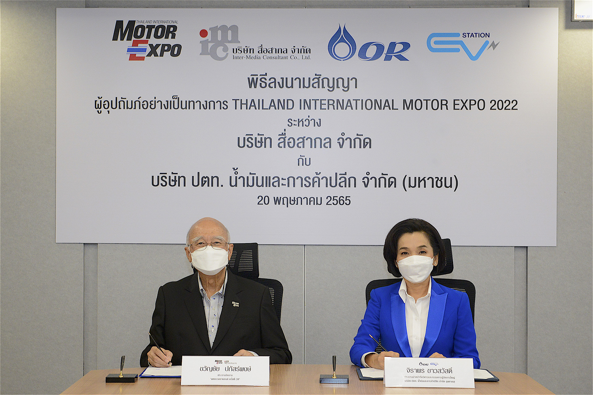 ขวัญชัย ปภัสร์พงษ์ ประธาน บริษัท สื่อสากล จำกัด ลงนามสัญญาร่วมกับ จิราพร ขาวสวัสดิ์ ประธานเจ้าหน้าที่บริหารและกรรมการผู้จัดการใหญ่ บริษัท ปตท. น้ำมันและการค้าปลีก จำกัด (มหาชน) หรือ โออาร์ ในการเป็นผู้อุปถัมภ์อย่างเป็นทางการในงาน “มหกรรมยานยนต์ ครั้งที่ 39” เมื่อเร็วๆ นี้