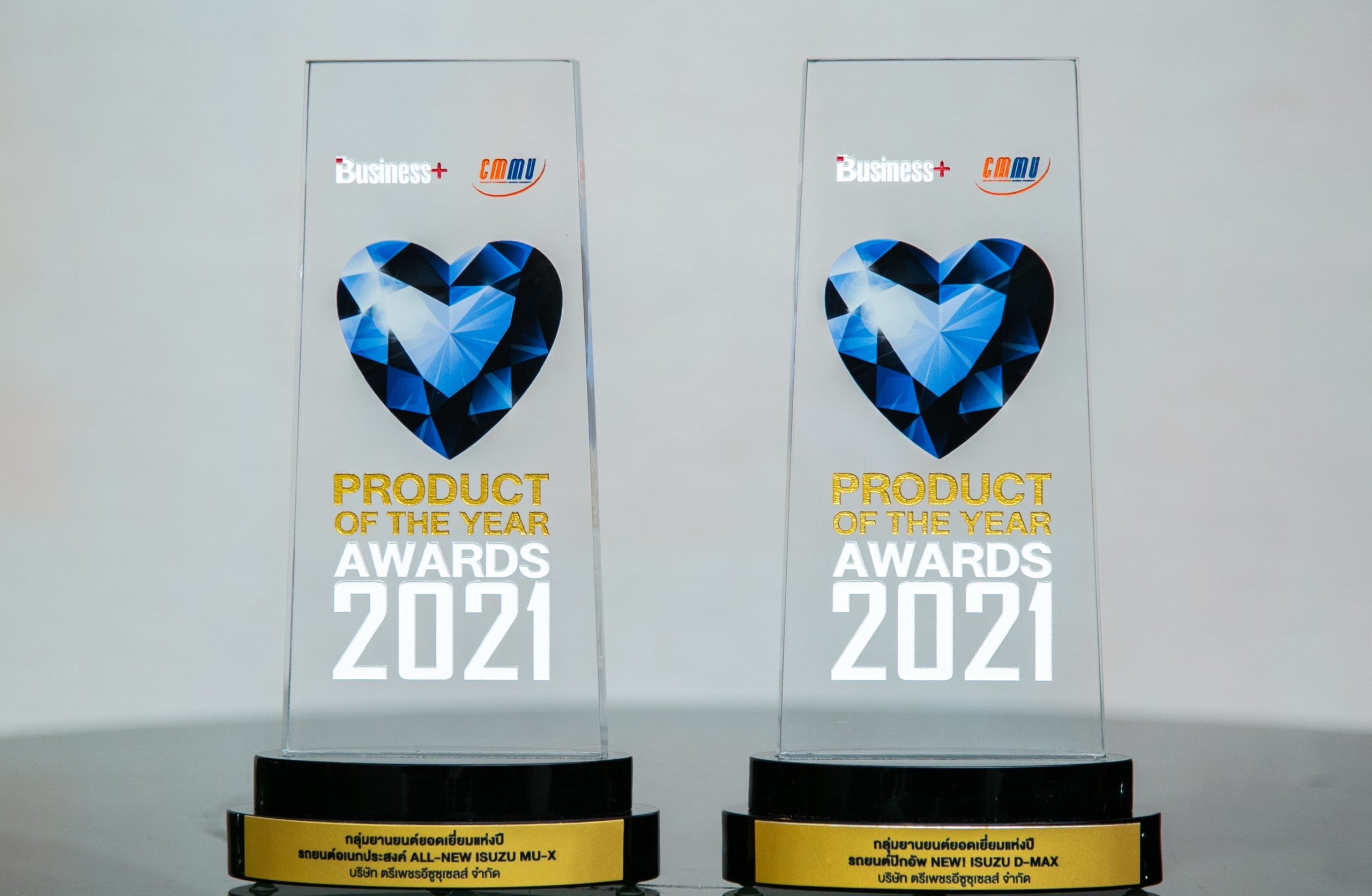คุณวิชัย สินอนันต์พัฒน์ กรรมการ บริษัท ตรีเพชรอีซูซุเซลส์ จำกัด รับมอบรางวัล “สินค้าและบริการแห่งปี 2564” (Business+ Product of the Year Awards 2021) โดย รถปิกอัพ “ใหม่! อีซูซุดีแมคซ์” และ รถยนต์อเนกประสงค์ “ออลนิว อีซูซุมิว-เอ็กซ์” ได้รับคะแนนสูงสุดในประเภทกลุ่มรถปิกอัพและกลุ่มรถยนต์อเนกประสงค์ ตามลำดับ ซึ่งเป็นผลจากการสำรวจของนิตยสาร Business+ โดยบริษัท เออาร์ไอพี จำกัด (มหาชน) ร่วมมือกับ วิทยาลัยการจัดการ มหาวิทยาลัยมหิดล และเข้าสู่ขั้นตอนการให้คะแนนโดยการโหวตจากประชาชนทั่วประเทศผ่านทางสื่อออนไลน์ ณ โรงแรมสวิสโฮเต็ล กรุงเทพฯ รัชดา