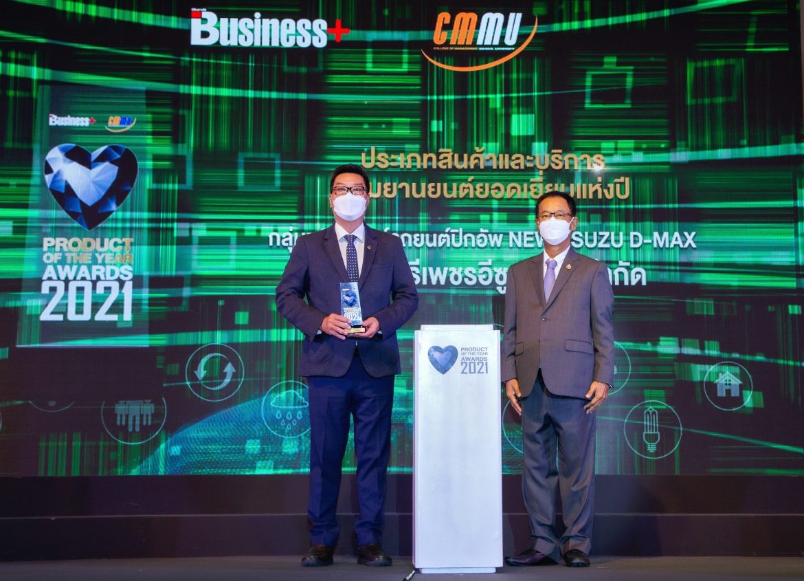 คุณวิชัย สินอนันต์พัฒน์ กรรมการ บริษัท ตรีเพชรอีซูซุเซลส์ จำกัด รับมอบรางวัล “สินค้าและบริการแห่งปี 2564” (Business+ Product of the Year Awards 2021) โดย รถปิกอัพ “ใหม่! อีซูซุดีแมคซ์” และ รถยนต์อเนกประสงค์ “ออลนิว อีซูซุมิว-เอ็กซ์” ได้รับคะแนนสูงสุดในประเภทกลุ่มรถปิกอัพและกลุ่มรถยนต์อเนกประสงค์ ตามลำดับ ซึ่งเป็นผลจากการสำรวจของนิตยสาร Business+ โดยบริษัท เออาร์ไอพี จำกัด (มหาชน) ร่วมมือกับ วิทยาลัยการจัดการ มหาวิทยาลัยมหิดล และเข้าสู่ขั้นตอนการให้คะแนนโดยการโหวตจากประชาชนทั่วประเทศผ่านทางสื่อออนไลน์ ณ โรงแรมสวิสโฮเต็ล กรุงเทพฯ รัชดา
