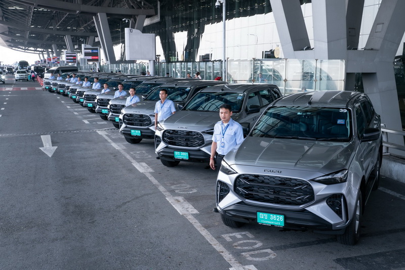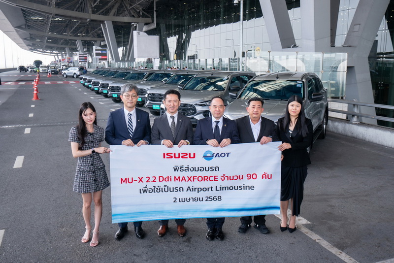 มร. มิชิมาสะ โคโนะ รองกรรมการผู้จัดการ บริษัท ตรีเพชรอีซูซุเซลส์ จำกัด ส่งมอบรถอเนกประสงค์ ใหม่! MU-X “THE NEXT PEAK” รุ่น Active ที่มาพร้อมเครื่องยนต์ใหม่! Isuzu 2.2 Ddi MAXFORCE พลังใหม่…กำหนดโลก และเกียร์อัตโนมัติ 8 สปีด จำนวน 90 คัน ให้แก่คุณกิตติพงศ์ กิตติขจร ผู้อำนวยการท่าอากาศยานสุวรรณภูมิและคุณสุวิทัต วงศ์วิเชียร รองผู้อำนวยการท่าอากาศยานสุวรรณภูมิ (สายการพาณิชย์) บริษัท ท่าอากาศยานไทย จำกัด (มหาชน) (ทอท.) ผู้ดำเนินการและจัดการท่าอากาศยานที่ดีระดับโลก รวมทั้งดำเนินการกิจการอื่นที่เกี่ยวข้องหรือต่อเนื่องกับการประกอบกิจการท่าอากาศยาน มั่นใจเลือก MU-X “THE NEXT PEAK” ผู้นำรถอเนกประสงค์ยอดนิยมของอีซูซุในเมืองไทยที่สามารถตอบสนองการใช้งานได้อย่างหลากหลาย ตลอดจนความสะดวกสบาย เทคโนโลยีล้ำสมัย รวมถึงพื้นที่ใช้สอยอเนกประสงค์ เพื่อใช้สำหรับ AOT LIMOUSINE ซึ่งเป็นบริการขนส่งไป-กลับท่าอากาศยานสุวรรณภูมิที่มีคุณภาพให้กับประชาชนทั่วไปและภาคธุรกิจ พร้อมมาตรฐานระดับความปลอดภัยสูงสุด ความน่าเชื่อถือ และความสะดวกสบาย