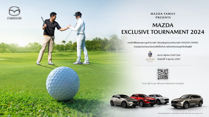 เพื่อยกระดับประสบการณ์และมอบสิทธิประโยชน์ให้กับลูกค้าครอบครัวมาสด้าเกินความคากหวัง มาสด้าจัดกิจกรรมสุดเอ็กซ์คลูซีฟเอกสิทธิ์สำหรับลูกค้าครอบครัวมาสด้า เชิญชวนลูกค้าสมัครเข้าร่วมออกรอบเล่นกอล์ฟเป็นก๊วน ในโครงการ “MAZDA EXCLUSIVE TOURNAMENT 2024” ณ สนาม Alpine Golf Club จัดแข่งขัน วันที่ 4 ตุลาคม 2567 เปิดรับสมัครคัดเลือกลูกค้าเจ้าของรถยนต์มาสด้า จำนวน 32 คัน โดยสามารถสมัครเข้าร่วม 2 คนต่อหนึ่งคัน รวมจำนวนจำนวน 64 คน ค่าสมัครเพียง 2,900 บาท (รวมค่ากรีนฟรี รถกอล์ฟ และแคดดี้) พร้อมกิจกรรมสุดเอ็กซ์คลูซีฟต่างๆ มากมายตลอดงาน เปิดรับสมัครตั้งแต่วันที่ 19 กรกฎาคม 2567 จนถึงวันที่ 18 สิงหาคม 2567 เวลา 18:00 น. กรุณากดลิงค์เพื่อสมัครเข้าร่วมการแข่งขันสำหรับลูกค้ามาสด้า https://m.mazda.co.th/PR-GET-0724