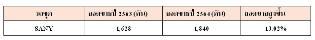 นายยศวัฒน์ เรืองรักษ์ลิขิต ซีอีโอ บริษัท ซานี่ ไทยยนต์ จำกัด เปิดเผยว่า นับตั้งแต่ ซานีไทยยนต์ เข้ามาทำตลาดแบรนด์ SANY ในประเทศไทย จนถึงปัจจุบันได้รับการตอบรับอย่างต่อเนื่องจากลูกค้า จนทำให้วันนี้ บริษัทฯ ประสบความสำเร็จอย่างมาก โดยสามารถผงาดขึ้นแท่นอันดับ 1 รถขุด 2 ปีซ้อน จากยอดขายในปี 2563 ที่กวาดยอดขายกว่า 1,600 คัน และในปี 2564 บริษัทฯ สามารถสร้างยอดขายได้ถึง 1,840 คัน เติบโตเพิ่มขึ้นถึง 13% มีส่วนแบ่งในตลาดถึง 30.4%